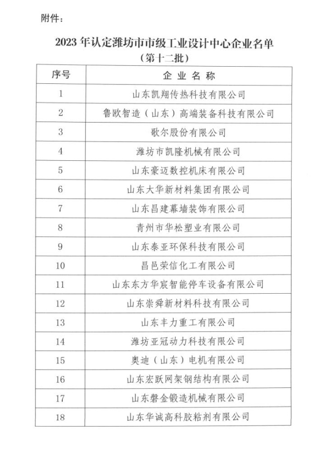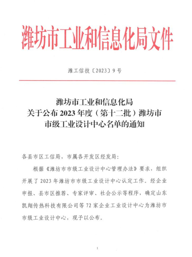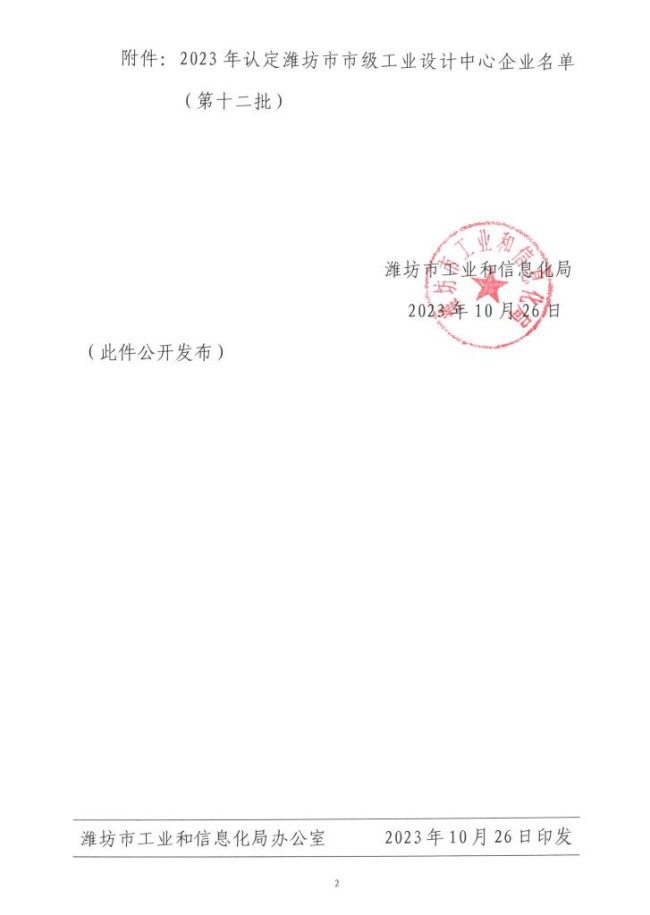 關(guān)于公布2023年度(第十二批)濰坊市市級(jí)工業(yè)設(shè)計(jì)中心名單的通知(濰工信技〔2023〕9號(hào))